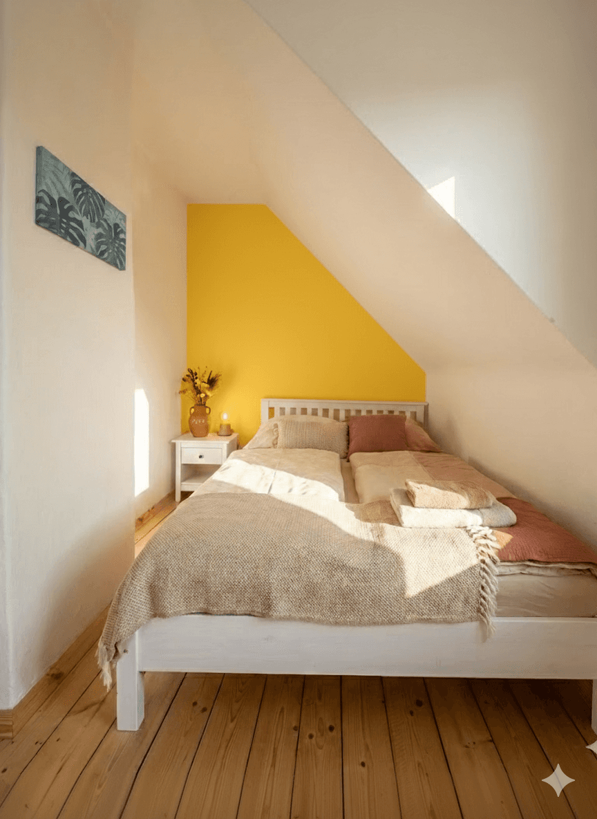The Sunflower room offers an intimate and cozy retreat for couples or solo travelers seeking comfort and tranquility. This charming double room features a quality double bed (140cm) with premium linens, providing a restful night's sleep after days spent exploring Murau and the nearby Kreischberg ski area. The room's thoughtful design maximizes space while maintaining the warm, inviting atmosphere that defines Chalet Elsa. Natural wood flooring and exposed architectural details celebrate the building's 15th-century heritage, while modern touches like dimmable lighting allow you to create your ideal environment. Despite its compact size, the room feels bright and welcoming, with carefully considered storage solutions and a peaceful ambiance. The Sunflower room proves that comfort and charm don't require vast space—it's the perfect choice for travelers who value quality over quantity and appreciate the intimate character of a boutique Alpine accommodation.